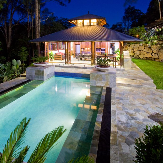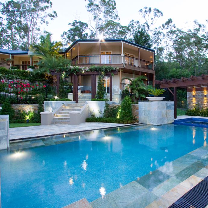 这个陡å¡çš„地点ä½äºŽä¸€ä¸ªå°æºªä¸‹æ¸¸å’Œæ¤ç‰©ä¿æŠ¤åŒºï¼Œè¿™ä¸ªæ³³æ± 和水疗区是一个更大的设计的一部分,其ä¸åŒ…æ‹¬ä¸€ä¸ªæ³³æ± äºå,凉廊,兰äºï¼Œå–·æ³‰ï¼Œé¸Ÿèˆï¼Œè½¦é“å’Œå‰ç«¯çš„å›´æ 。综åˆåŒ–å¹¶ä¸”è‹›åˆ»çš„é¡¹ç›®åŠ ä¸Šå®¢æˆ·éžå¸¸ç‰¹å®šçš„è¦æ±‚æžå…·æŒ‘æˆ˜æ€§ï¼Œä½†æˆæžœä¹Ÿæ˜¯æ”¶èŽ·é¢‡ä¸°ã€‚è¿™ä¸ªç»è¿‡æ”¹å–„å’Œåˆ†è§£çš„æ³³æ± é…æœ‰å½¼å¾—å…‹é‡Œç‰¹ç‰Œå†…é¥°ï¼Œç¢§èŽŽç‰Œé©¬èµ›å…‹ç“·ç –ï¼Œç”Ÿæ€å‹å¥½åž‹å®¤å¤–石头过é“(Cobb&Co & Harvest牌)和石墙饰é¢ï¼ˆMitta Mitta牌). 景观结构所使用的木料是典型的柚木,并且ç»è¿‡Cutek Extreme(高级木æåŠå·¥ç¨‹æœ¨æ–™ä¿æŠ¤æ²¹ï¼‰çš„æŸ“色和处ç†ï¼Œæœ€å¤§é™åº¦åœ°å»¶é•¿äº†ä½¿ç”¨å¯¿å‘½ã€‚æ³³æ± è£…æœ‰PC2000地é¢å†…置清æ´ç³»ç»Ÿï¼Œå¹¶ä¸”æ°´ç–—åŒºæ˜¯ç”±å¤©ç„¶æ°”åŠ çƒçš„。Cobb & Coç‰ŒçŸ³ç –å»¶ä¼¸è‡³æ°´ä¸‹ä¸¤ä¸ªå…¨é•¿é•¿å‡³ã€‚æ³³æ± æ¯è¾¹éƒ½æœ‰é»‘è‰²çš„èšæ°¯ä¹™çƒ¯æ ¼æ …,用作溅水平å°åŒºåŸŸç³»ç»Ÿï¼Œä»Žè€Œå…许水平é¢å’Œæ³³æ± 周边平å°çš„å¹³é¢é«˜åº¦ä¸€è‡³ã€‚